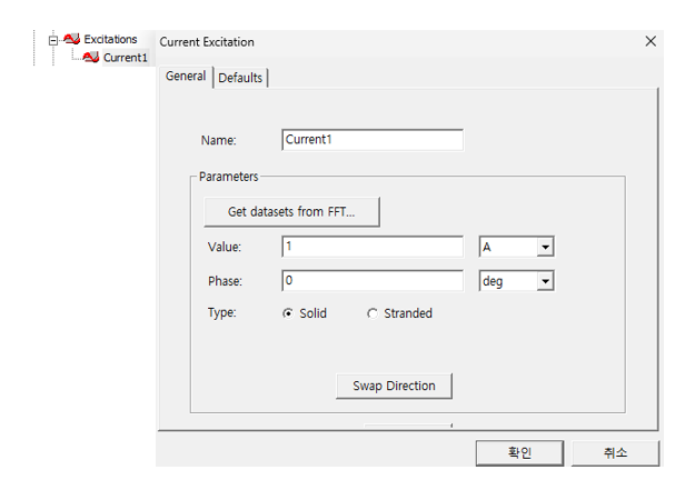 전자기장 형성을 위해 한쪽의 Loop(Tx)에는 다음과 같이 Current(= 단위 전류 1A)를 입력해줍니다.