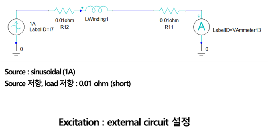 Exciatation은 External로 설정했으며 Sinusoidal 전류원으로 1A를 인가했습니다.
