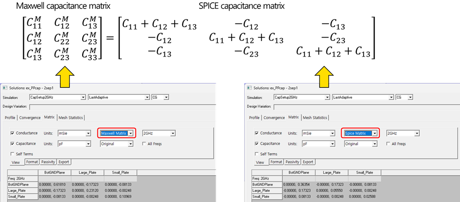커패시턴스 행렬에 의미는 다음과 같으니 참조해주세요.