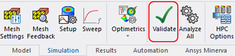 •리본(Ribbon) → Simulation 탭에서 초록색 체크 표시가 있는 Validate 아이콘을 클릭합니다.