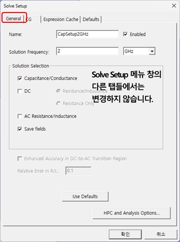 Project Manager에서 Analysis를 마우스 우클릭하고 Add Solution Setup을 선택하여 Solve Setup 대화상자를 엽니다.