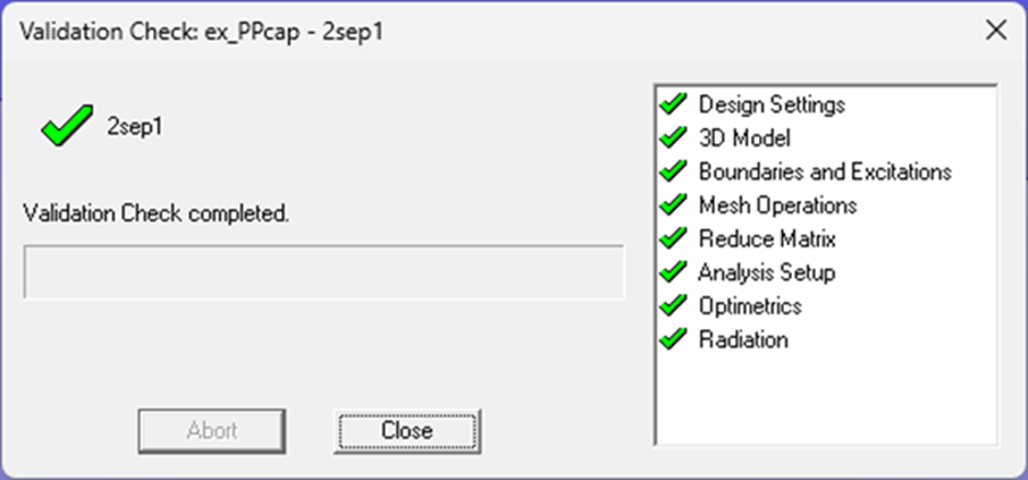 참고 : Validation Check과 Analyze All 작업은 GUI 상단의 Q3D Extractor 풀다운에서도 사용할 수 있습니다.