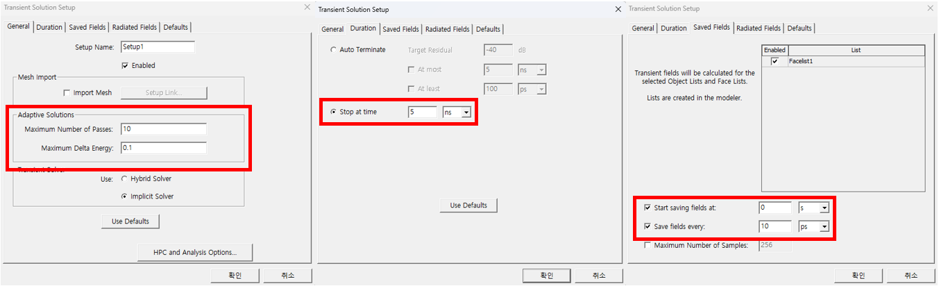 아래와 같이 Analysis Setup을 설정하고 해석을 진행합니다.