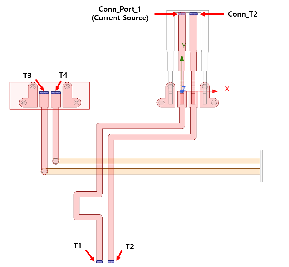 각 선로에 흐르는 전류 값을 확인하기 위해 아래와 같이 Lumped RLC Boundary를 설정해줍니다(Current Source 부분 제외).