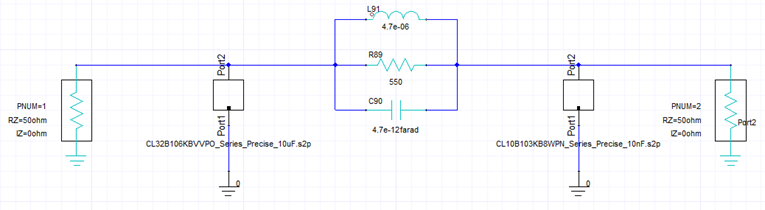 - 양쪽은 커패시터의 Touchstone파일을 사용하여 회로를 구성하였습니다.