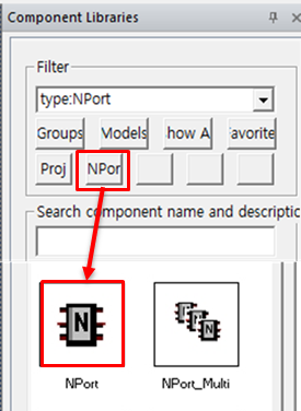 - Touchstone 파일은 Nport 그룹에서 Nport로 추가할 수 있습니다.