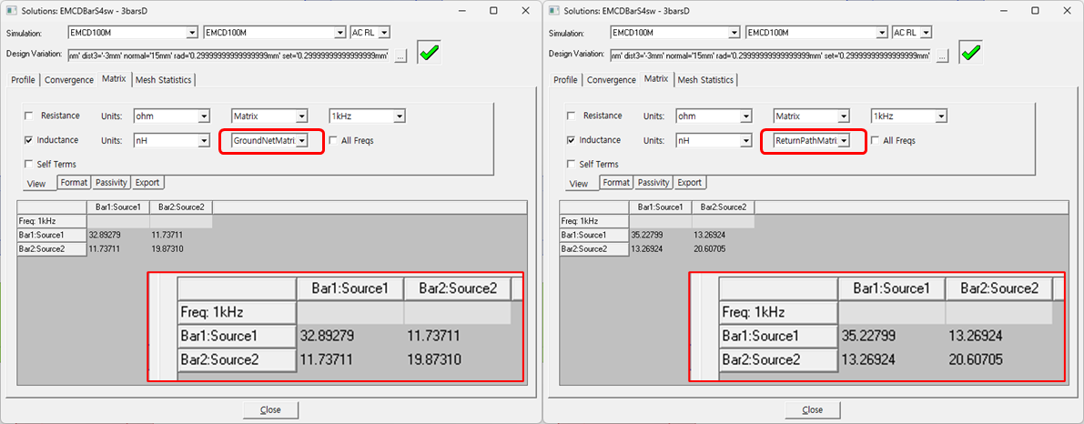이는 Ground Net과 Return path의 인덕턴스 행렬 연산이 다르기 때문입니다.