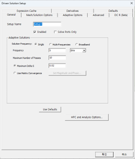 이후 Solution Setup을 해석 주파수에 맞게 설정합니다.(Ex. 5GHz)