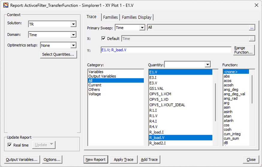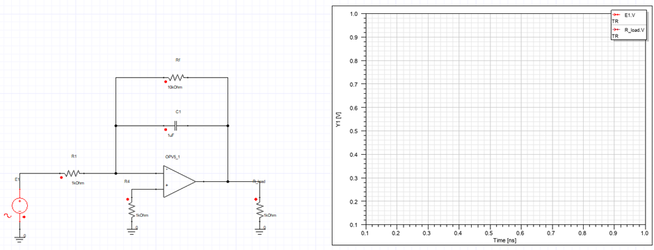 • Rectangular plot 에서 “TR” Solution 선택, 출력신호 Vin.V and R_load2.V