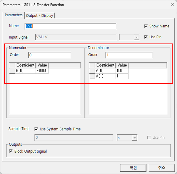 하기의 그림처럼 회로 결선합니다. (GS1 block은 Active filter특성, Vin은 Filter의 입력 신호, VM1은 Vin의 Conservative한 신호를 Non-Conservative한 신호로 출력, E3는 Non-conservative한 Gs1의 출력 신호를 Conservative한 신호로 출력, Vin을 앞서 설정한 E1과 동일하게 정의)