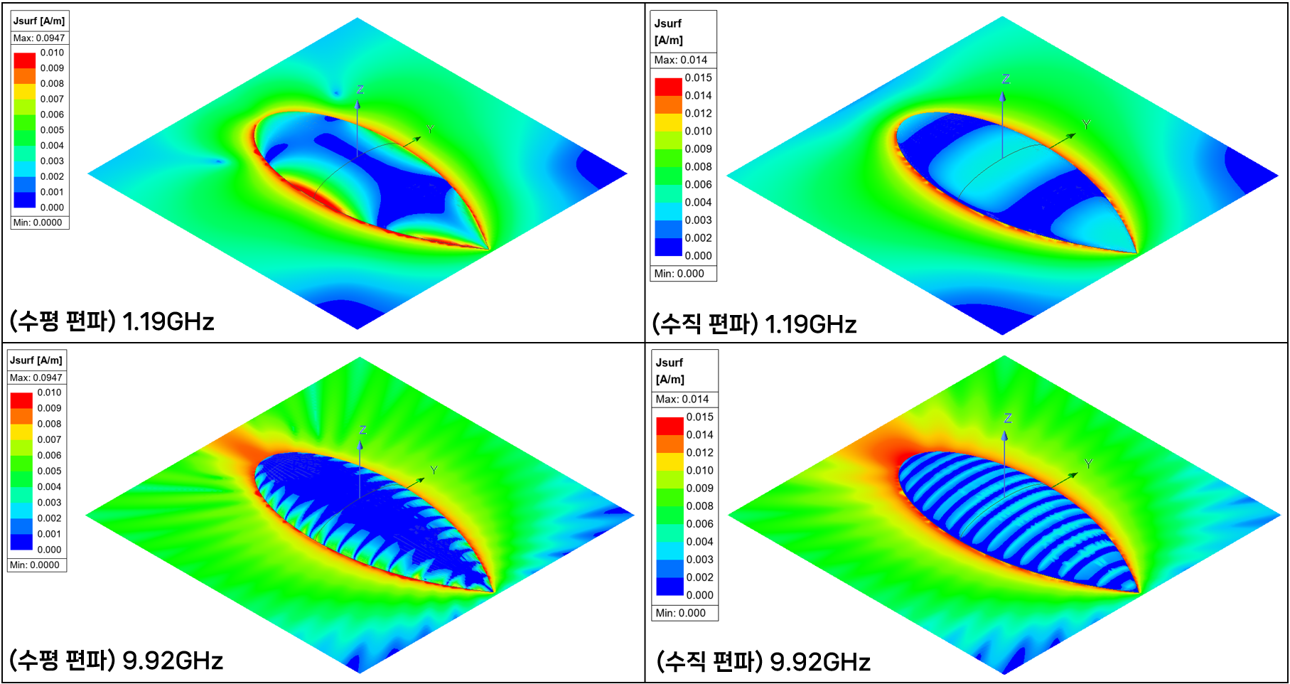 동일한 형상에 대해 편파만 변경하여 두 가지 케이스를 비교 분석하였습니다.