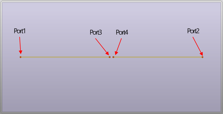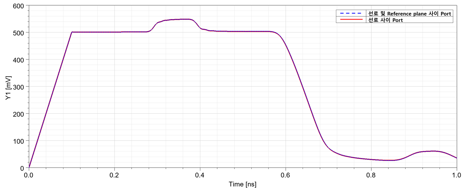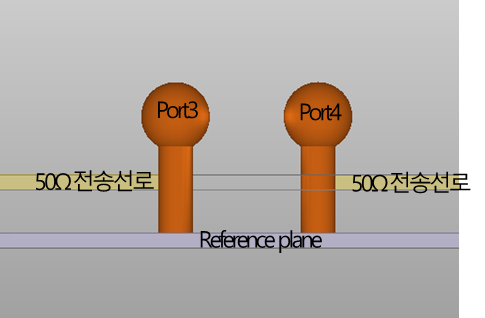 - Port 1과 2는 기본 모델과 동일하게 Port 설정, Port3과 4는 50Ω 전송선로와 Reference plane 사이에 설정
