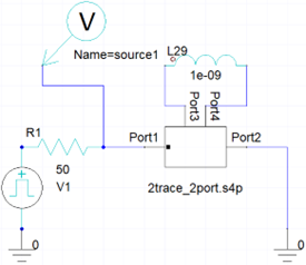 - 아래 그림과 같이 Port1에는 소스를 인가하고, Port2는 GND symbol에 연결