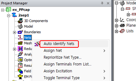 그러면 3D Modeler Tree에 표시되는 시트 객체 이름을 기반으로, 세 개의 Net 이름이 Project Manager에 나타납니다.