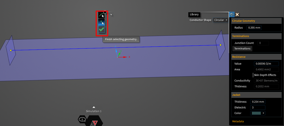 - Circular Geometry - Radius: 도선의 반지름 설정