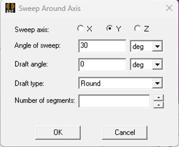 Sweep Around Axis 창의 각 항목 내용은 아래와 같습니다.