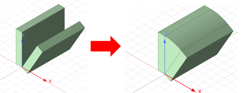 Sweep Around Axis 기능을 이용해 아래 그림과 같이 30도만큼 벌어진 두 육면체 사이를 채울 수 있습니다.