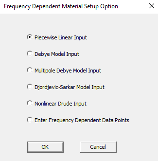 그러면 Frequency Dependent Material Setup Option 대화 상자가 나타납니다.
