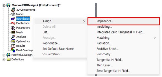 2. Project Manager의 Boundaries 우클릭 – Assign – Impedance