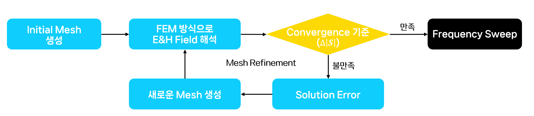 HFSS는 아래와 같은 과정을 통해 Mesh를 생성하고 수정합니다.