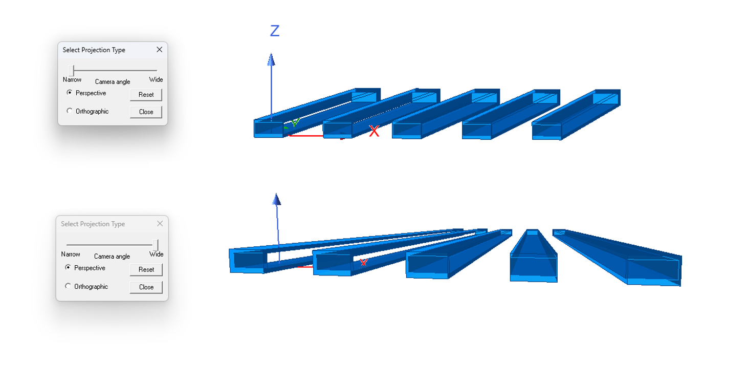 - Perspective: 슬라이드 바를 이용해 투사 타입을 변경할 수 있습니다.