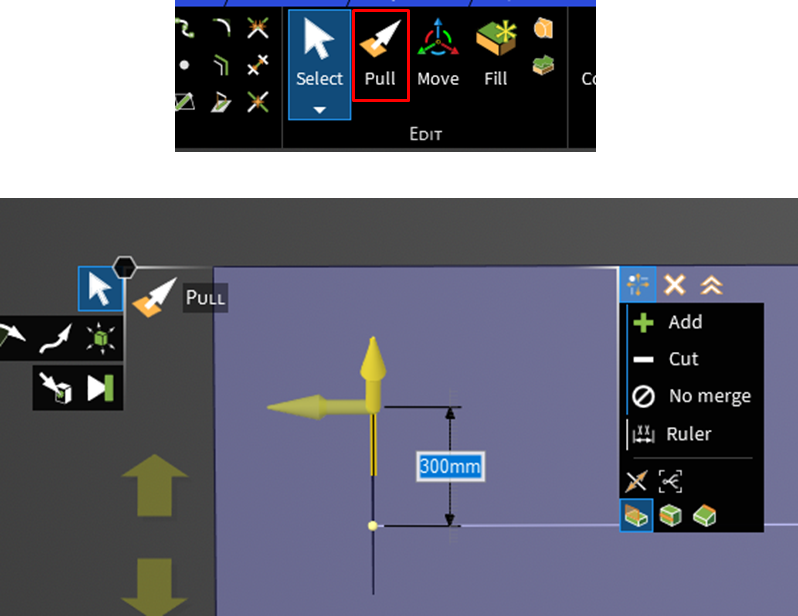 - Pull을 클릭 후 늘리고자 하는 객체를 선택 후 늘릴 방향을 선택할 수 있습니다.