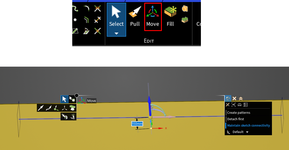 - 상위 Design탭 Edit에서 Move를 클릭하여 사용할 수 있습니다.