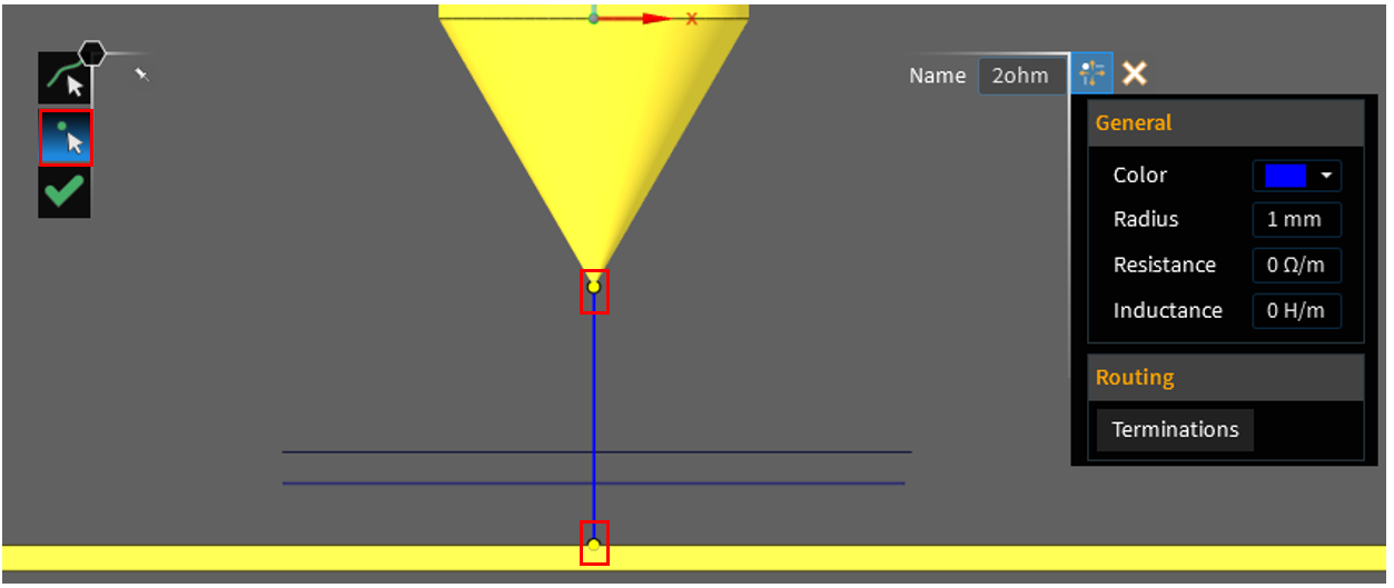 4. Termination을 설정할 Point를 선택하고 소자 종류와 값을 입력합니다.