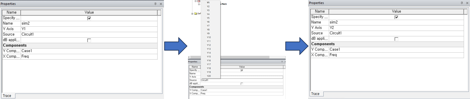 그래프에서 Y축을 추가하려는 데이터를 선택한 후 Properties 창에서 Y Axis 항목을 선택한다.